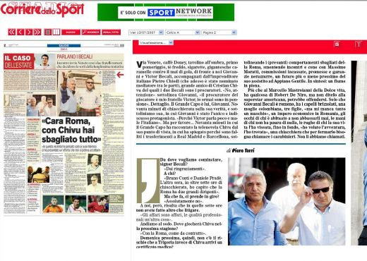 De asemenea, Giovanni Becali a declarat ca AS Roma nu l-a respectat pe Cristi Chivu: "In urma cu 2 ani au promis ca echipa se face pentru Totti si dupa pentru Chivu. Il respectam pe Totti, insa noi am ramas la 2.5 milioane de lire pe an. Cand Chivu mai are 6 luni de contract, am putea sa incepem tratativele cu alta echipa, dar nu vrem, vom vorbi la sfarsitul contractului sau", a mai spus Giovanni Becali in Gazzetta dello Sport.