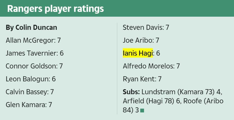 Ianis Hagi, notat cu 6 de cotidianul The Scottish Sun