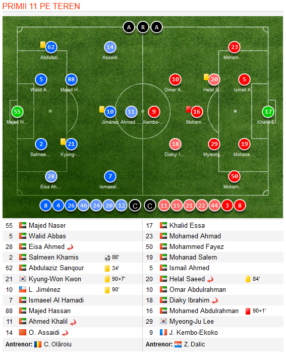 Meciul dintre Al Ahli si Al Ain a fost unul incendiar, finalul fiind unul tensionat. Jucatorii celor doua formatii au fost la un pas de bataie, iar Olaroiu a fost trimis in tribuna.