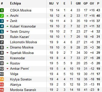 Precizare: Dinamo Moscova a ajuns de pe ultimul loc pana la doua puncte de Europa League, dorinta sefilor lui Super Dan. interesant este ca, in campionat, Dinamo e singura echipa care nu a facut egal pana acum.