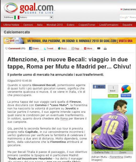 Presa din Italia anunta: "Miscarile lui Becali: Chivu, la Real! Mutu, la Roma!"