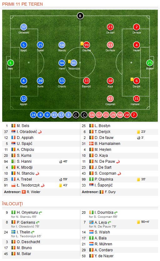 Stanciu a fost inlocuit in minutul 65 de nigerianul Onyekuru, in timp ce Chipciu a terminat partida pe teren.