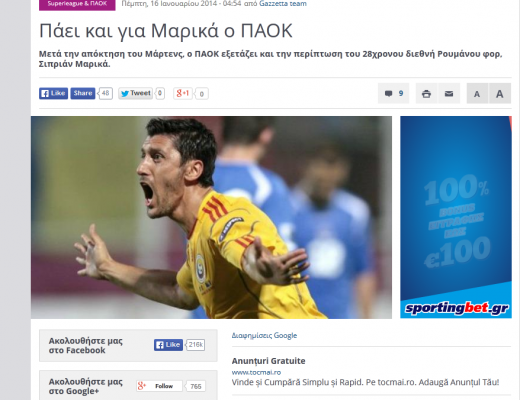Gazzetta.gr scrie ca urmatoarele zile sunt decisive pentru transferul romanului in Grecia.