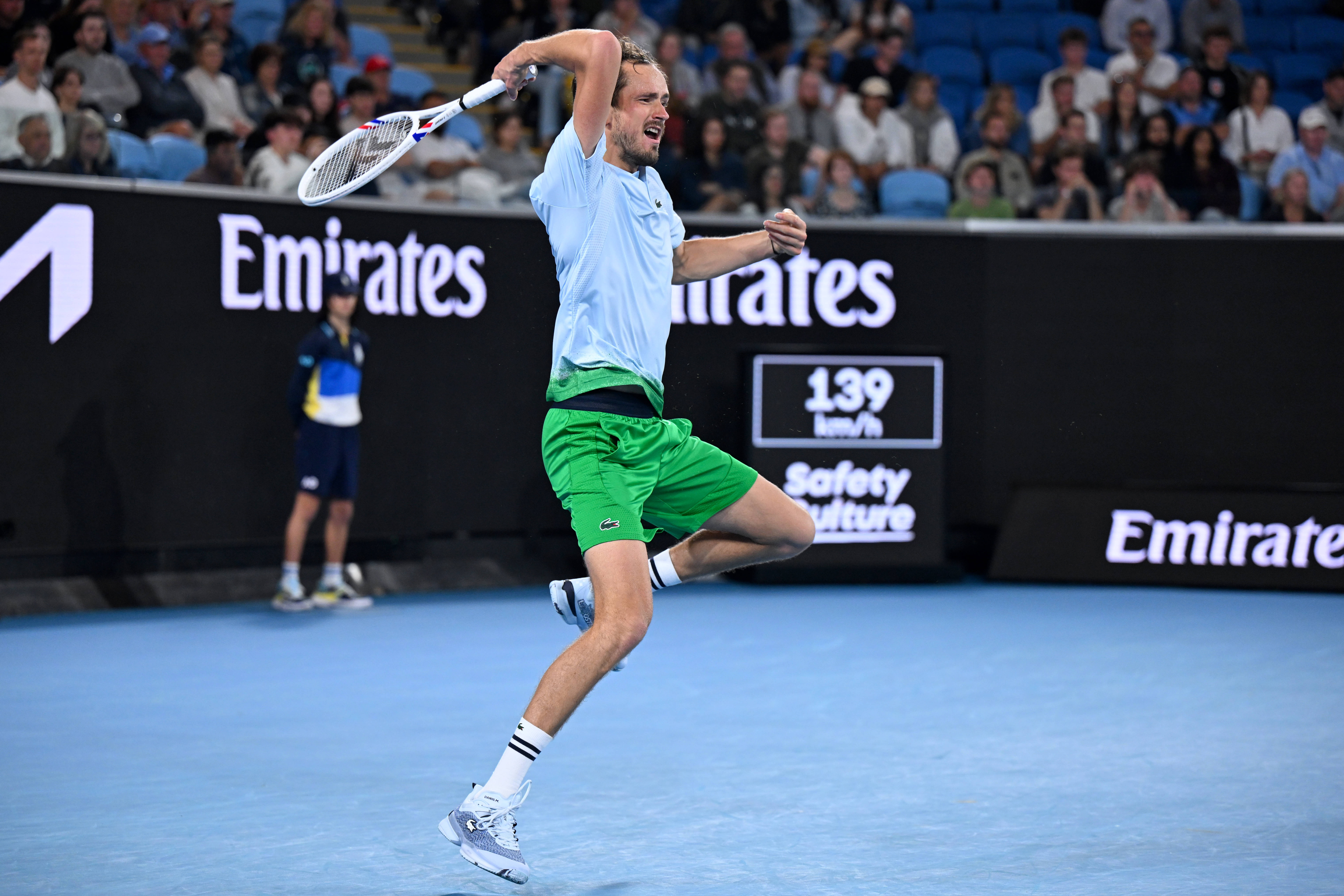 Într-un gest care nu a mai fost văzut în tenis recent, Daniil Medvedev l-a salutat pe adversar, în zona fileului, i-a strâns mâna arbitrului, după care a părăsit terenul fără să îi mai pese de ce se întâmplă cu geanta sa cu rachete și celelalte lucruri cu care s-a prezentat la meci.
