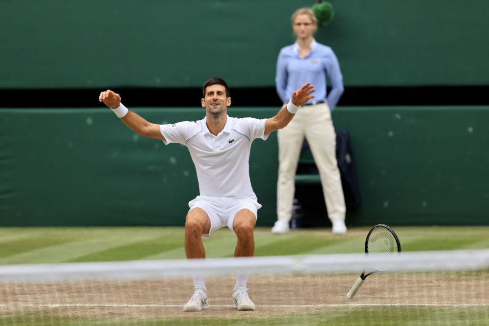 Novak Djokovic a cucerit al saselea titlu de campion la Wimbledon si al treilea consecutiv pe iarba londoneza, dupa ce l-a invins in finala editiei 2021 pe Matteo Berrettini, scor 6-7, 6-4, 6-4, 6-3 la capatul a trei ore si 23 de minute de joc. Liderul ATP i-a egalat pe Roger Federer si pe Rafael Nadal in clasamentul all-time care numara titlurile de mare slem adjudecate, toti cei trei tenismeni avand in prezent cate 20 de reusite de acest calibru.