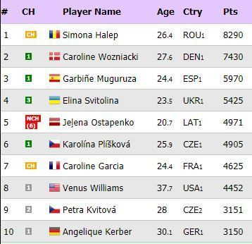 Eliminata in semifinale la Indian Wells, Halep si-a marit avansul fata de principala urmaritoare cu 800 de puncte. Simona are 2200 de puncte fata locul al treilea, detinut de Garbine Muguruza.