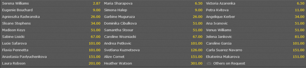 Cota americancei la pariuri a scazut dupa retragerea lui Na Li, in timp ce Simona Halep are cota a patra la victoria finala, la egalitate cu Eugenie Bouchard, cea care a eliminat-o in semifinalele Wimbledon.