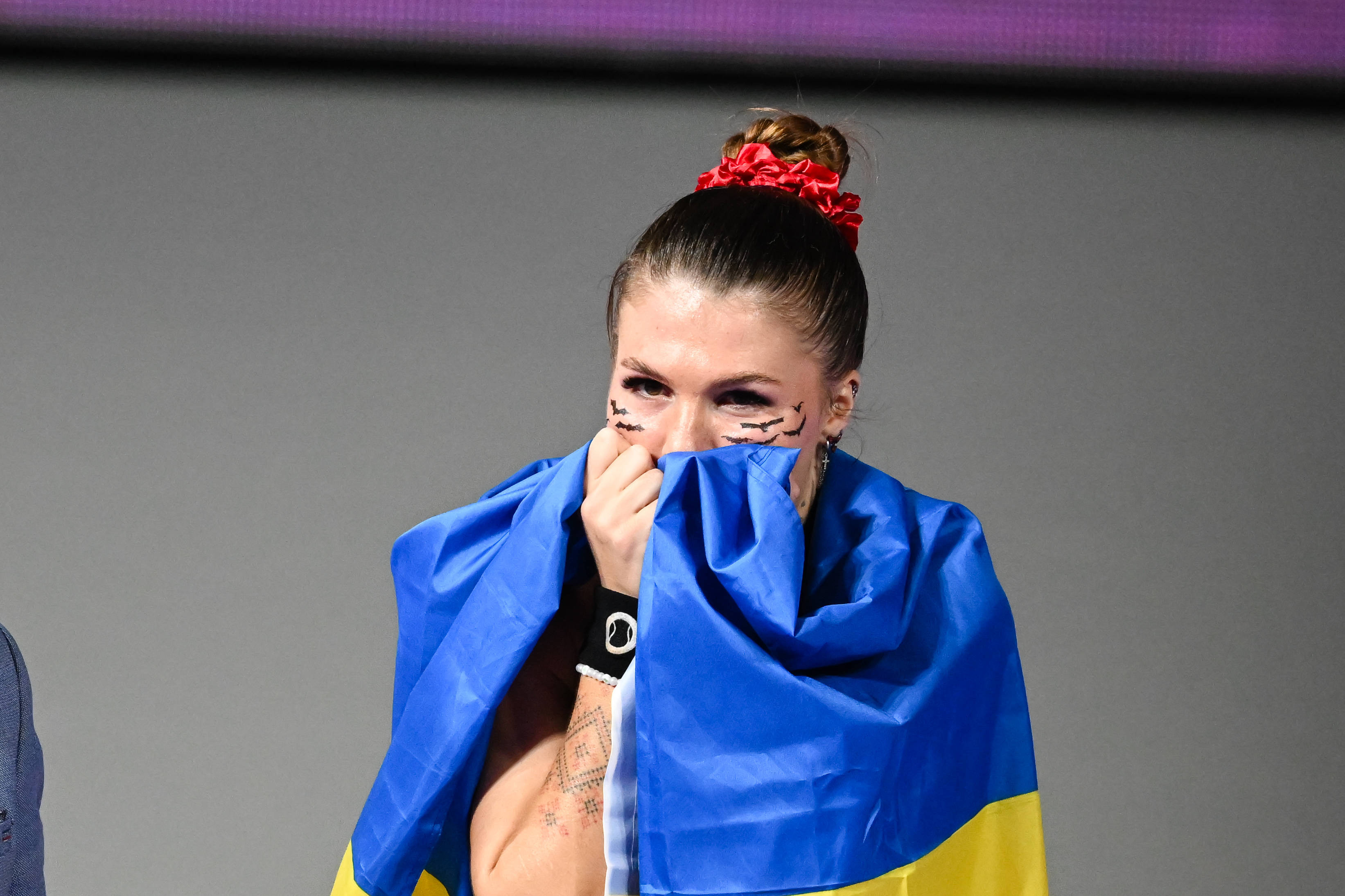 Copleșită de emoții, imediat după încheierea jocului, Oleksandra Oliynykova a luat steagul Ucrainei și a declarat că este recunoscătoare publicului român, pentru susținerea afișată.