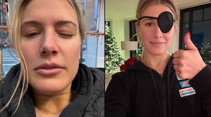 În timpul unui antrenament de pickleball, sportiva canadiană a primit o minge în ochi. La Urgențe, Bouchard a aflat că și-a zgâriat corneea.