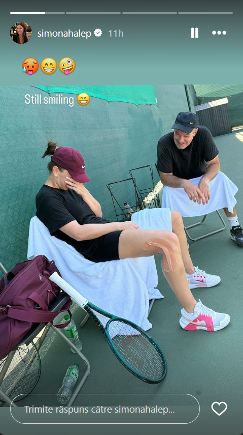În postarea sa, Halep a inclus mesajul „Still Smiling” / „Încă zâmbesc”, ceea ce sugerează că, în ciuda dificultăților întâmpinate, aceasta încearcă să rămână pozitivă.