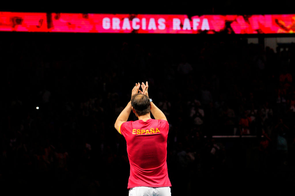 În arena de la Malaga, singur în mijlocul terenului, aclamat de public în sunetul „Rafa, Rafa”, ibericul a luat microfonul pentru a-şi oficializa finalul de carieră şi pentru a le mulţumi, pe larg, tuturor celor care l-au însoţit de la debutul său.