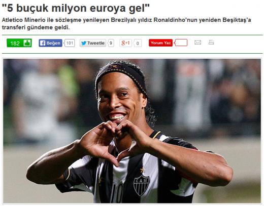 Turcii spera sa dea lovitura, mai ales ca il pot lua de la brazilieni cu doar 200.000 de euro, atat cat este clauza de reziliere a lui Ronaldinho.