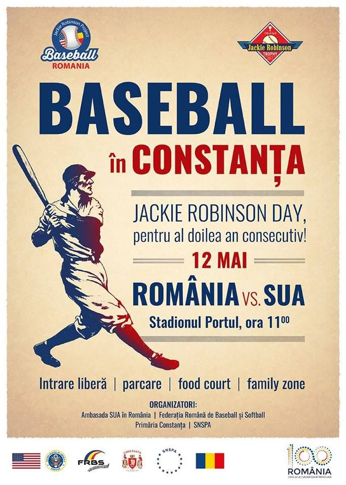 Sambata, ora 11:00, pe Stadionul Portul din Constanta, echipa de baseball a Romaniei si o selectionata a Statelor Unite, reprezentata de militarii americani din baza Mihail Kogalniceanu, isi disputa pentru a doua oara trofeul Jackie Robinson.