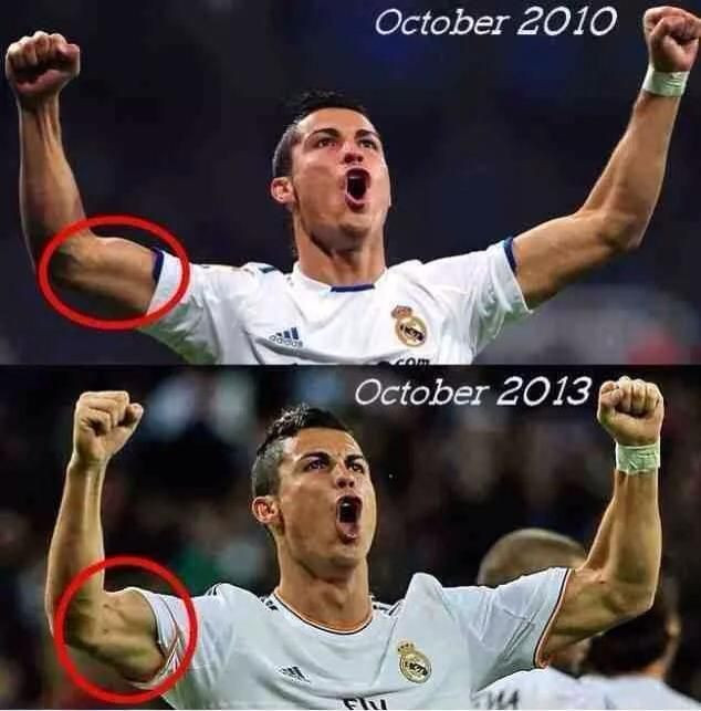 Mai multi fani au incercat astfel sa compare doua poze ale lui Ronaldo, una din 2010 si una din 2013, diferentele fiind extrem de mari.