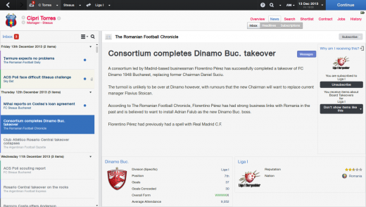 Cum ar suna stirea asta? Din pacate pentru dinamovisti, e doar o intamplare din Football Manager, celebrul joc de pe PC in care fanii preiau destinele echipelor favorite. Un cititor ne-a trimis aceasta captura din joc la adresa [email protected].