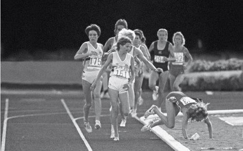 In timp ce ea si Decker se luptau pentru prima pozitie, in spate, si ele desprinse de pluton erau Puica si Sly. La un moment dat, micuta atleta Budd este impinsa de Decker, sau pune o piedica (nu vom afla niciodata asta...) si Decker cade, lovindu-se rau. Cursa continua cu Budd in fata pentru inca o vreme, asta dupa ce si-a aruncat privirea in spate, sa vada ce s-a intamplat.