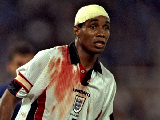 Apoi, un alt moment, in 1997, cand a jucat cu o taietura imensa la cap meciul decisiv in preliminariile CM 1998, un 0-0 cu Italia. Atunci Anglia mergea la turneul final, insa Ince incepea partida cu un tricou alb si o termina cu unul rosu, de la sangele care i-a curs toata partida.