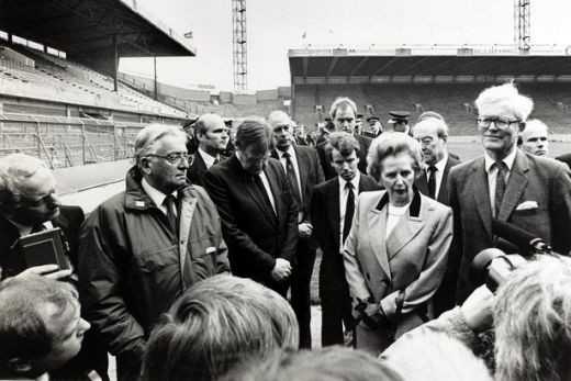 In 1989 a fost din nou un an negru pentru Doamna de Fier - marcat de tragedia de la Hillsborough. Atunci, la semifinala FA Cup jucata pe stadionul celor de la Sheffield, intre Liverpool si Nottingham, au murit 96 de oameni. Ce s-a intamplat atunci, tragedia in sens general a fost pusa pe seama 'huliganilor' care apartineau de Liverpool. Doamna de Fier afirma atunci ca e vorba despre fani fara bilet si aflati sub influenta bauturilor alcoolice, care au incercat sa intre in stadion cu forta, apoi au creat panica.