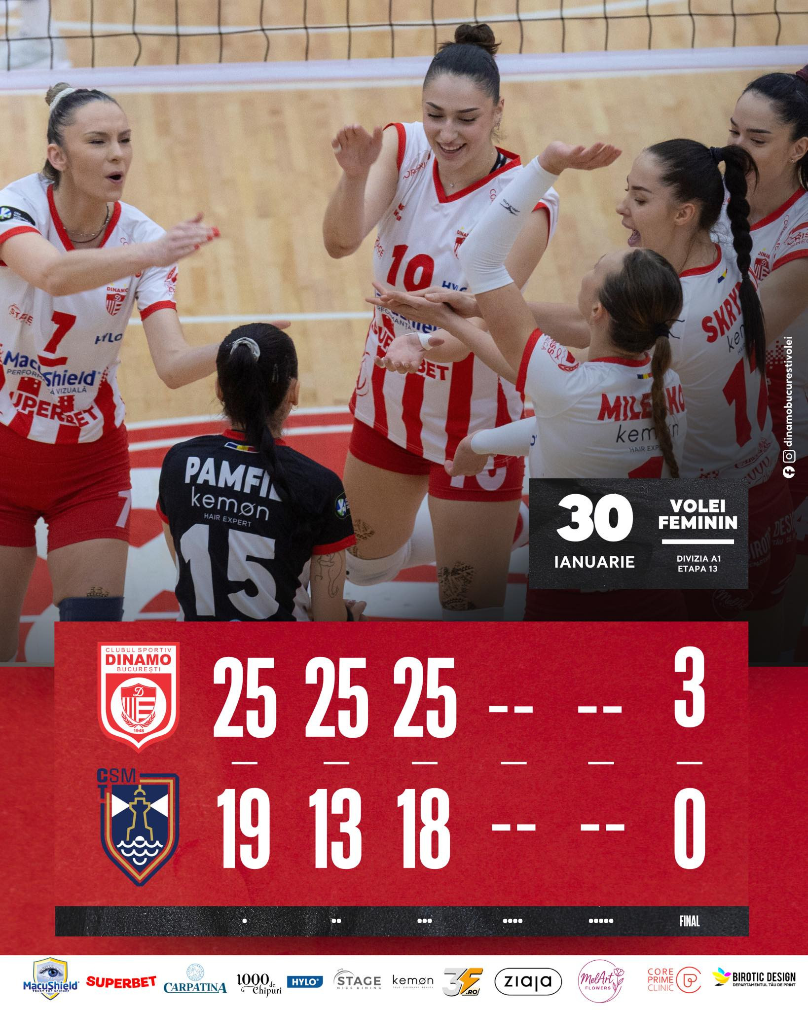 Felicitări fetelor! Felicitări staff-ului tehnic! 💥”, a postat la final CS Dinamo București.