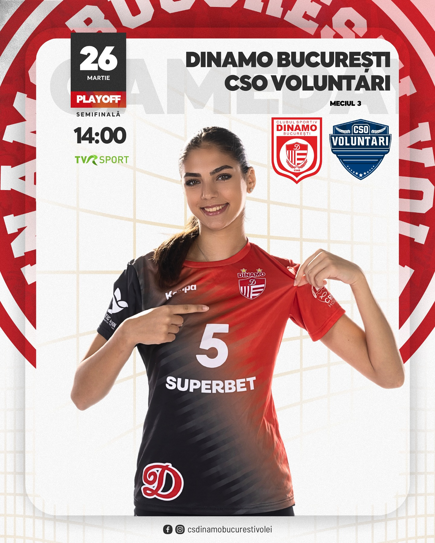 După Dinamo - CSO Voluntari 3-2 și CSO Voluntari - Dinamo 3-2, astăzi, de la ora 14:00, cele două echipe joacă în Sala Dinamo meciul decisiv pentru calificarea în finala Diviziei A1, acolo unde câștigătoarea semifinalei va lupta pentru trofeu cu Volei Alba Blaj.
