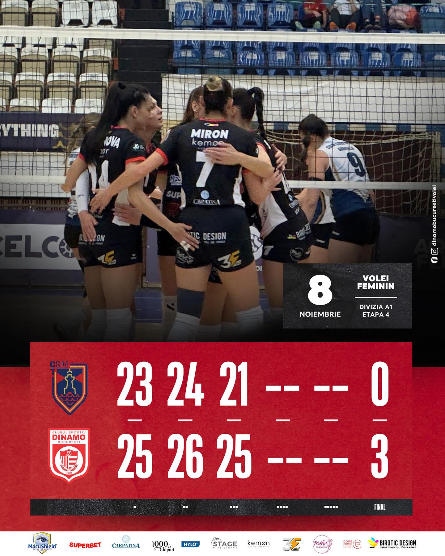 Felicitări fetelor și staff-ului pentru a treia victorie din noul sezon! 🆙”, a precizat CS Dinamo București pe pagina oficială de Facebook a clubului din Șoseaua Ștefan cel Mare.